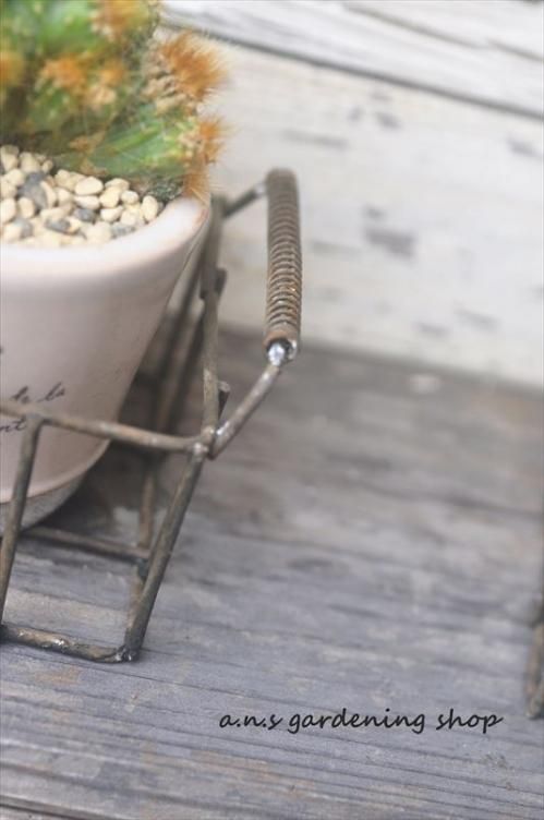 錆びたワイヤー・古びたポットにサボテン寄せ植え No.1