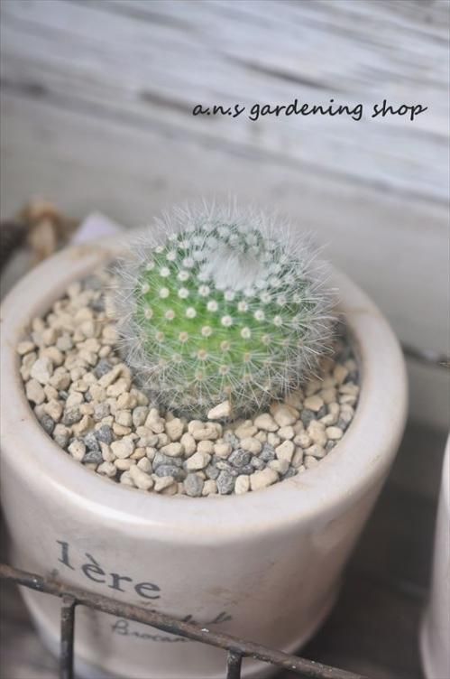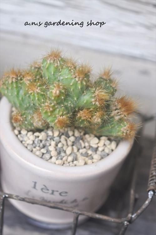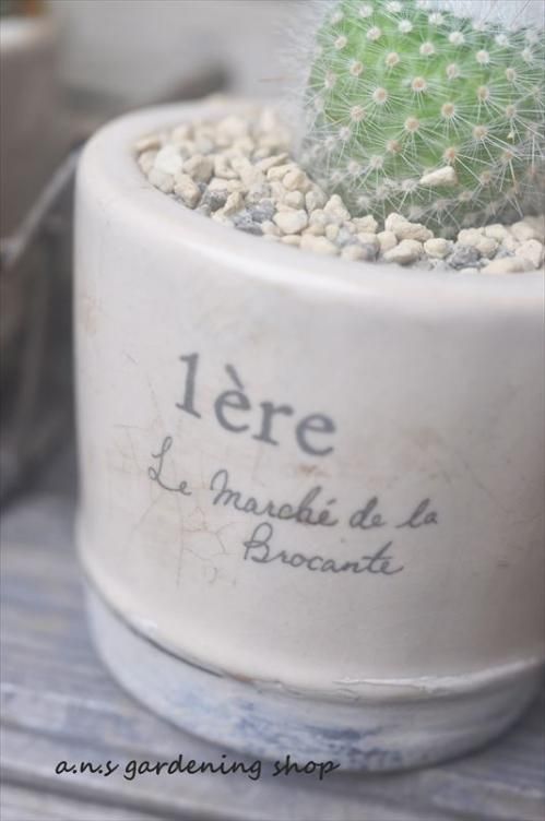 フランスの蚤の市にあるような古びたポットにサボテンを植えています。