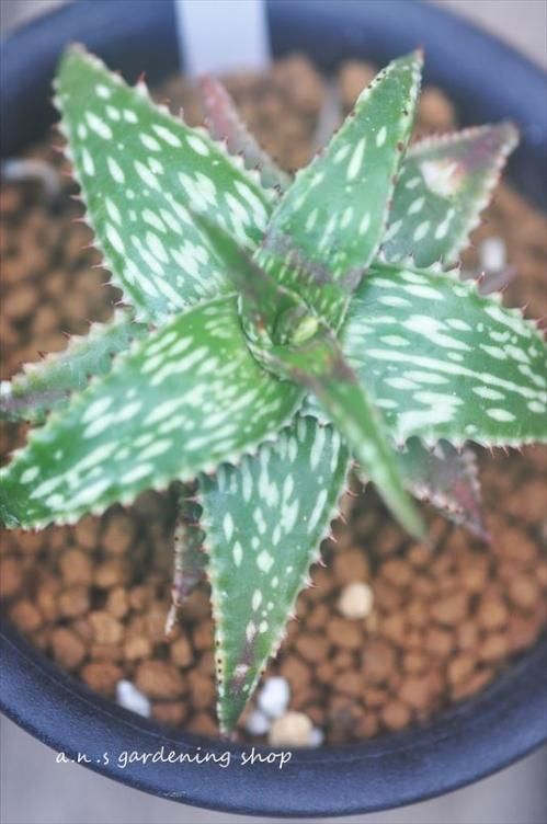 固い照り葉で群生する小型アロエです。